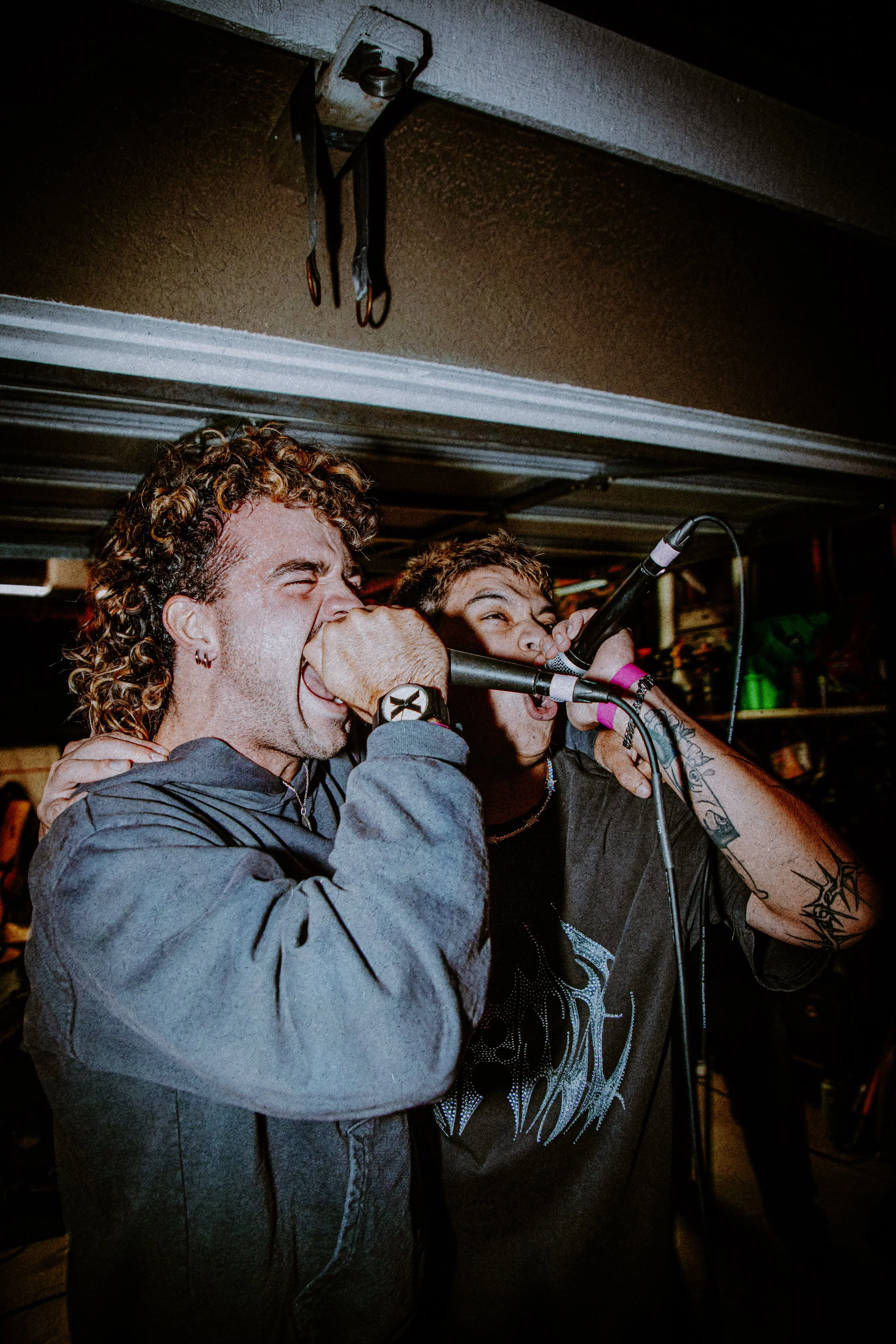 One constant at nearly every hardcore show is the overwhelming sense of community, and this night was no exception. From the moment the first band played, the interconnectedness of the scene was obvious. Many of the musicians knew one another, shared band members, or even joined each other onstage for guest spots. Familiar faces filled the pit—spin kicking, two-stepping, and diving in—while newer kids hovered at the edges, either watching in awe or throwing themselves headfirst into the chaos. Hardcore veterans could be seen initiating the movement or grabbing the mic to shout along. Everyone seemed to know someone, and even if you didn’t, the environment made it easy to form fast, genuine connections.